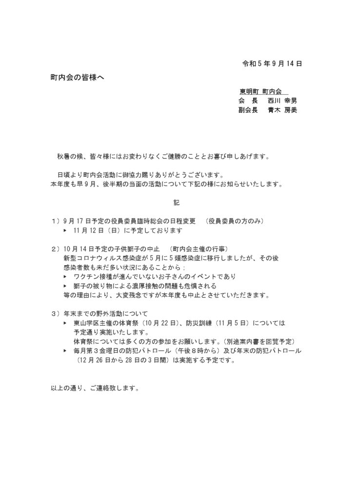 年末までの活動案内2023 2023 9/15 お知らせ 2023年9月15日 年末までの活動案内2023 1 ファイル 82.05 KB ダウンロード お知らせ ふれあい一万歩あるく会 「助け合いの仕組みづくり」についてのご案内 関連記事 交番だより 令和8年1月号 2026年1月10日 名古屋市環境局からのお知らせ 2026年1月10日 令和7年度 年末年始ゴミ収集日 2025年12月13日 交通事故防止のPOINT 令和7年12月 2025年12月13日 交通安全 生活安全 2025年年末号 2025年11月15日 交通事故防止のPOINT 2025年10月9日 交通事故防止のポイント 2025年8月10日 安否確認プレートの見本 2025年8月10日