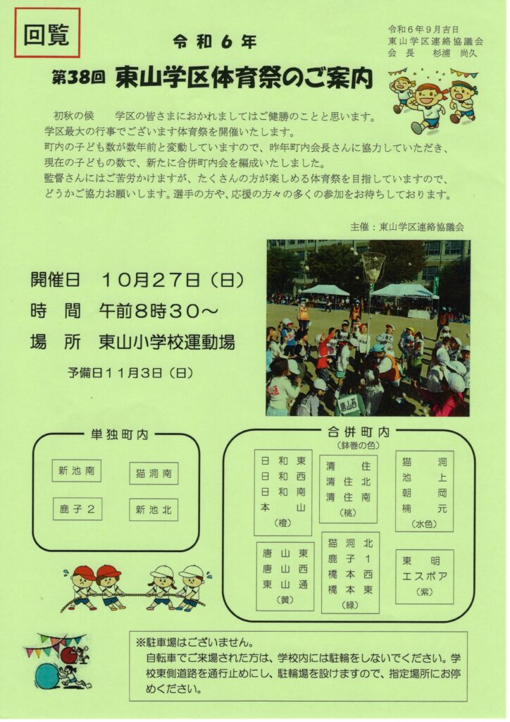 東山学区体育祭2024 2024 9/15 イベント 2024年9月15日 東山学区体育祭のご案内 1 ファイル 623.55 KB ダウンロード イベント 千種巡回バス 経路変更のお知らせ 火災報知器について 関連記事 千種区民まつり 2024年9月15日 第37回 千種区・名東区 ジョギング ウォーキング大会 2024年9月15日 令和6年 町内対抗グランドゴルフ大会のご案内(至急) 2024年4月22日 第26回 コミセン祭りのお知らせ 2024年2月9日 年末防犯パトロールと防災防犯提灯行列 2023 2023年12月15日 ふれあい一万歩あるく会 2023年9月15日 東山学区体育祭2023 2023年9月15日 令和5年 夏祭り・盆踊り大会 2023年7月18日