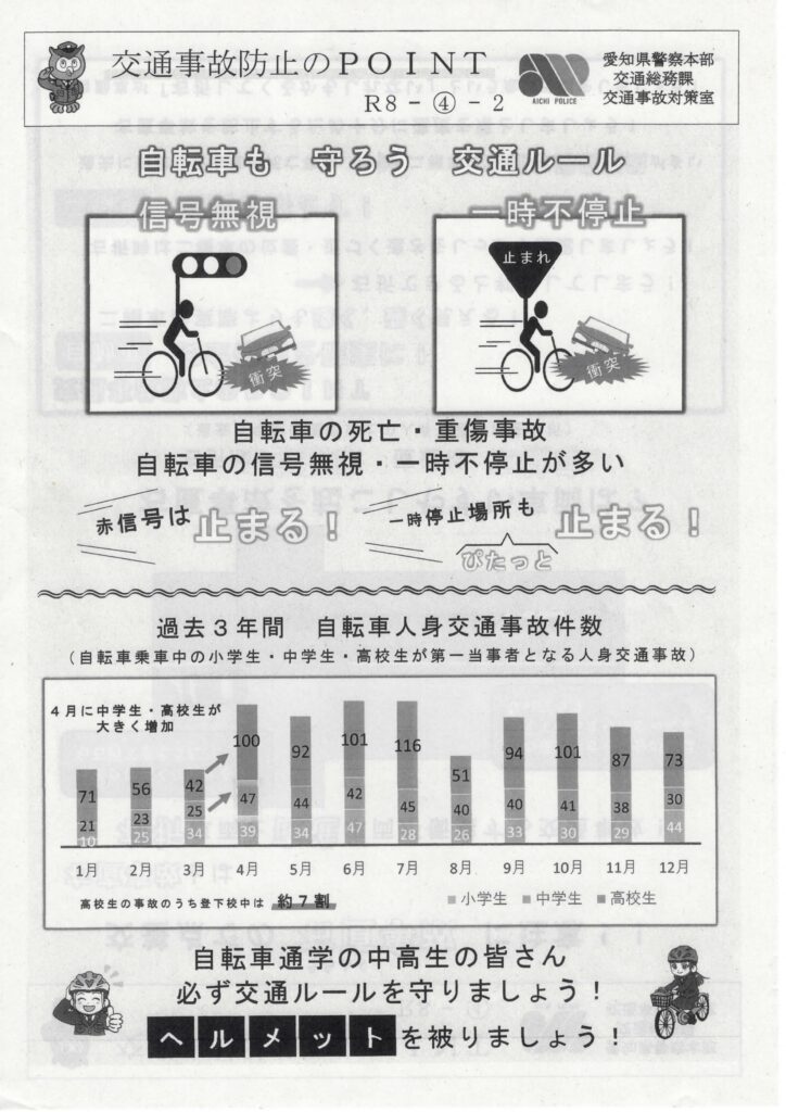 交通事故防止のPOINT 令和8年4月 2026 4/09 お知らせ 2026年4月9日 交通事故防止のPOINT 令和8年4月 1 ファイル 1.21 MB ダウンロード お知らせ 地域安全対策-NO,10 関連記事 地域安全対策-NO,10 2026年4月9日 地域防災 NEWS 令和8年3月 2026年3月13日 セーフティーマイタウンちくさ 令和8年3月号 2026年3月13日 交番だより 令和8年3月号 2026年3月13日 令和6年能登半島地震から学ぶ 2026年2月12日 交番だより 令和8年1月号 2026年1月10日 名古屋市環境局からのお知らせ 2026年1月10日 令和7年度 年末年始ゴミ収集日 2025年12月13日